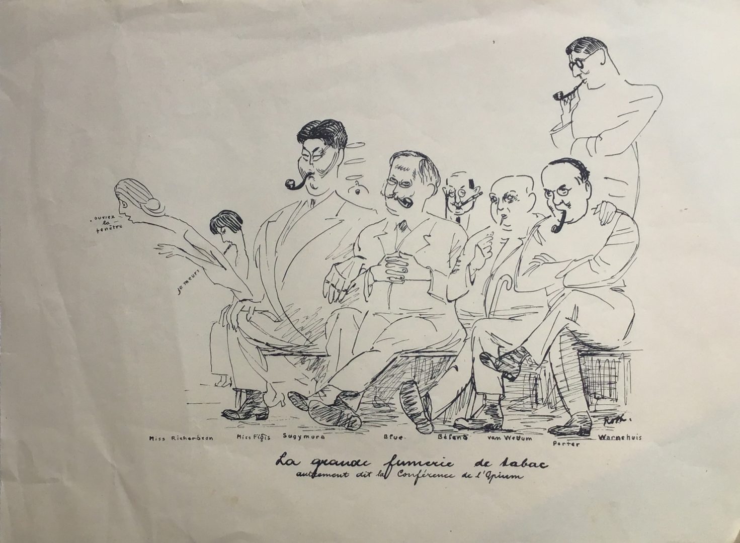 - dessin paru à l’occasion de l’Acte de la 2ème conférence de l’Opium à Genève du 17 mars 1924 au 19 février 1925