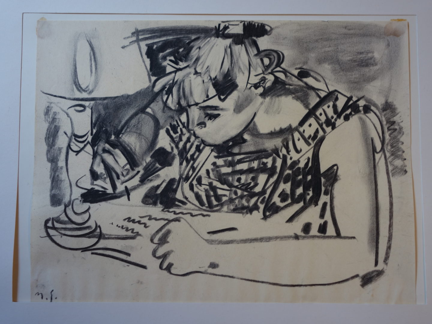 - la jeune fille écrivant sous la lumière de la lampe est traitée dans trois lithographies différentes