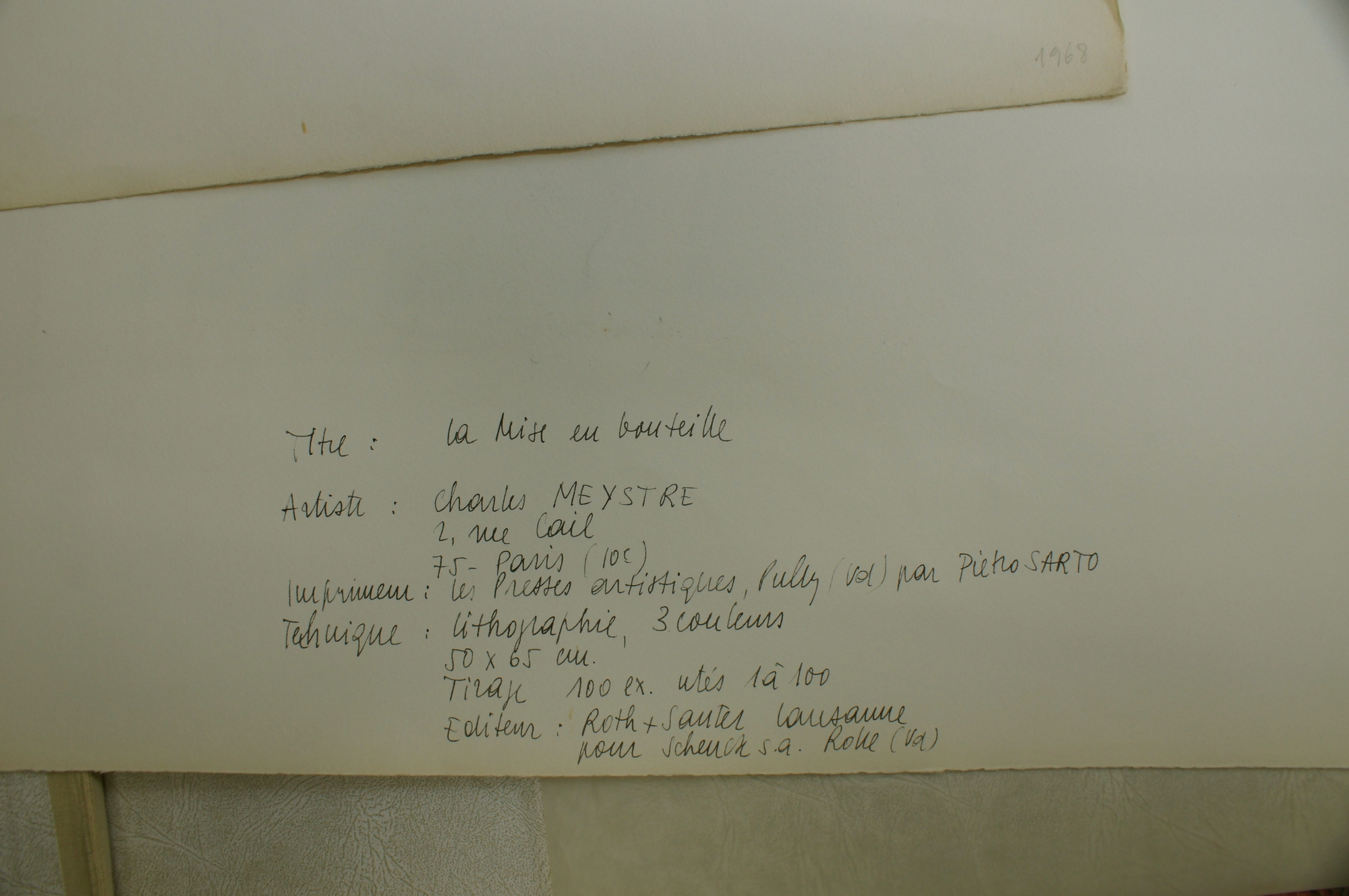 - 1 ex signé, daté et justifié : « épr. d’état - vert chaud » ; « V. Schenck » bg ; au dos : « tirage à 100 pour Schenck s.a Rolle (Suisse) / 200.- »