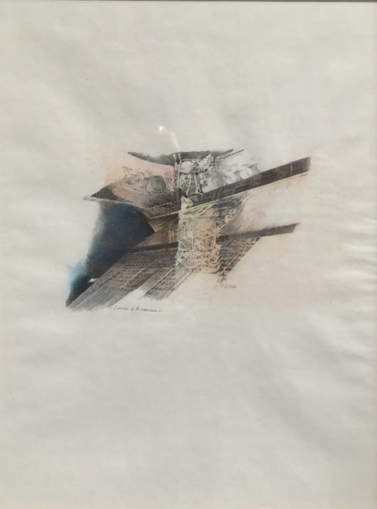 - 1 dessin signé, titré, encadré sous verre 73 x 56