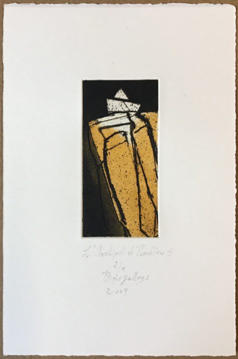 L’Archipel d’Aurélien III Artiste BOISGALLAYS Maya Numéro d'inventaire FAA-BM-6155 Titre L’Archipel d’Aurélien III Disponibilité Œuvre inaliénable Année 2009 Technique / Support Aquatinte, Eau forte, Papier Catégories Paysage Signature / Datation « Boisgallays /2009 » bm Remarques - Épreuve signée, datée, titrée et justifiée 2/9 - 2ème épreuve version BN « Bibliothèque nationale [de France?] » Agrandir l'image Découvrez l'artiste BOISGALLAYS Maya Montreux (CH, F) 1949 Peinture, Peinture à l'huile, Xylographie, Lithographie, Gravure, Dessin, Aquarelle Fonds géré par la FAA Consulter sa fiche
