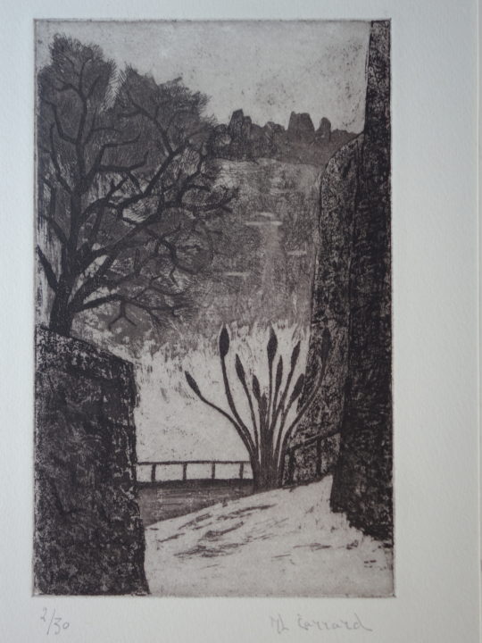 Le brouillard monte Artiste CARRARD-KOHLER Marie-Louise Numéro d'inventaire FAA-CML-3248 Titre Le brouillard monte Année 1966 Dimensions sur chassis 43x34.5 cm Technique / Support Eau forte, Aquatinte Catégories Paysage Signature / Datation "ML Carrard" bd Remarques - 4 épreuves justifiées de 2/30 à 5/30 - titre manuscrit sur le journal d'emballage de la plaque, daté 1966 Agrandir l'image Découvrez l'artiste CARRARD-KOHLER Marie-Louise Châtelard Orbe (CH) 5 septembre 1901 / 1 décembre 1981 Fonds géré par la FAA Consulter sa fiche