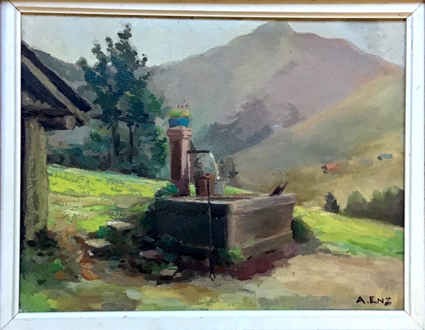 Le Curtillard (Isère) Fontaine Artiste ENZ Albert Numéro d'inventaire FAA-EA-4091 Titre Le Curtillard (Isère) Fontaine Technique / Support Huile, Carton Catégories Paysage de montagne Signature / Datation « A.Enz » bd Remarques - Titre au dos - Au dos mention : « après 1938 (au dos) », mention posthume. Elle renvoie à un autre dos du tableau probablement disparu. Agrandir l'image Découvrez l'artiste ENZ Albert Winterthur (CH, F) 25 septembre 1909 / 11 mai 1982 Fonds géré par la FAA Consulter sa fiche Images complémentaires ENZ Albert – Le Curtillard (Isère) Fontaine – Huile, Carton – Paysage de montagne
