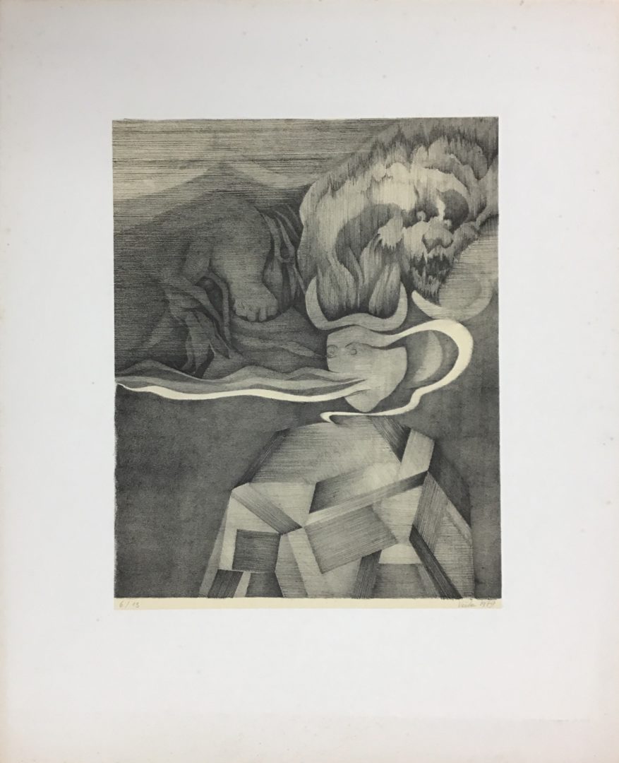 Le génie ailé Artiste VOÏTA Denise Numéro d'inventaire FAA-VD-4777 Titre Le génie ailé Année 1979 Technique / Support Lithographie Catégories Mythologie Signature / Datation « Voïta 1979 » bd Remarques - 1 épreuve justifiée 2/16 - 1 épreuve justifiée 5/16 et signée - 1 épreuve justifiée 6/16 - 1 épreuve justifiée 9/16, signée et datée - 1 épreuve sur papier de Chine beige justifiée 3/13 - 1 épreuve sur papier de Chine beige justifiée 6/13, signée et datée Agrandir l'image Découvrez l'artiste VOÏTA Denise 1928 / 2008 Peinture, Dessin, Lithographie, Tapisserie, Fonds géré par la FAA Consulter sa fiche Images complémentaires VOÏTA Denise – Le génie ailé 1979 – Lithographie – Mythologie