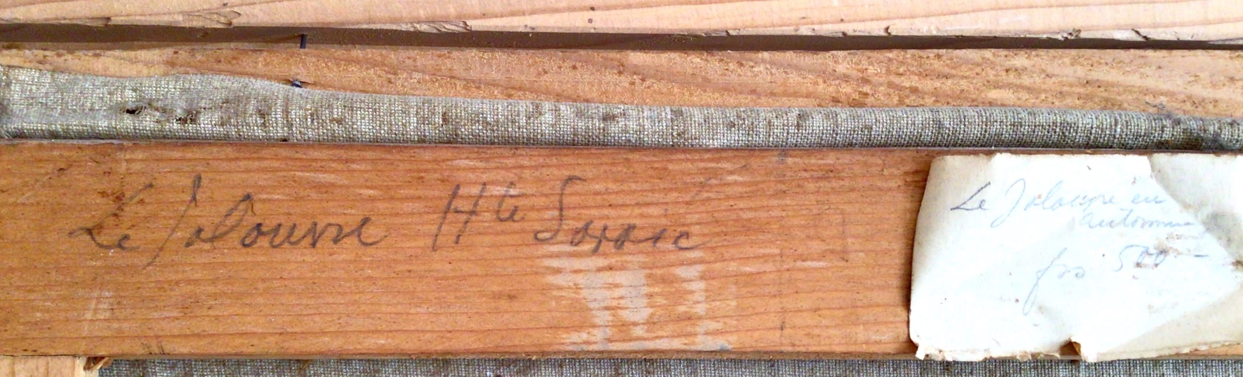 - Sur le châssis, tampon : « aux arts/fournitures pour les beaux-arts / A. Perrier/Bvd helvétique 24 Genève » gm