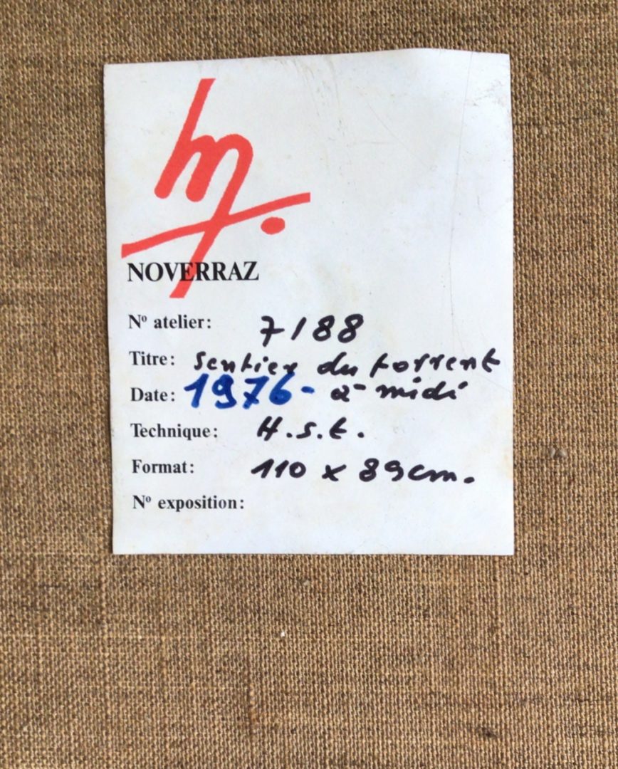 Le sentier du torrent à midi Artiste NOVERRAZ Henri Numéro d'inventaire FAA-NH-5201 Titre Le sentier du torrent à midi Année 1976 Technique / Support Huile, Toile Catégories Paysage Signature / Datation « hn / 28.8.76. » bg Remarques - Titre et date sur une étiquette collée au dos hd - Autre titre « Carpotos I » (?) sur la traverse du châssis Agrandir l'image Découvrez l'artiste NOVERRAZ Henri (CH) 10 juillet 1915 / 8 février 2002 Fonds géré par la FAA Consulter sa fiche Images complémentaires NOVERRAZ Henri – Le sentier du torrent à midi 1976 – Huile, Toile – Paysage NOVERRAZ Henri – Le sentier du torrent à midi 1976 – Huile, Toile – Paysage