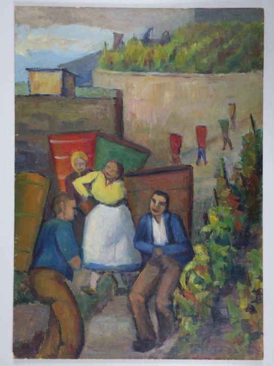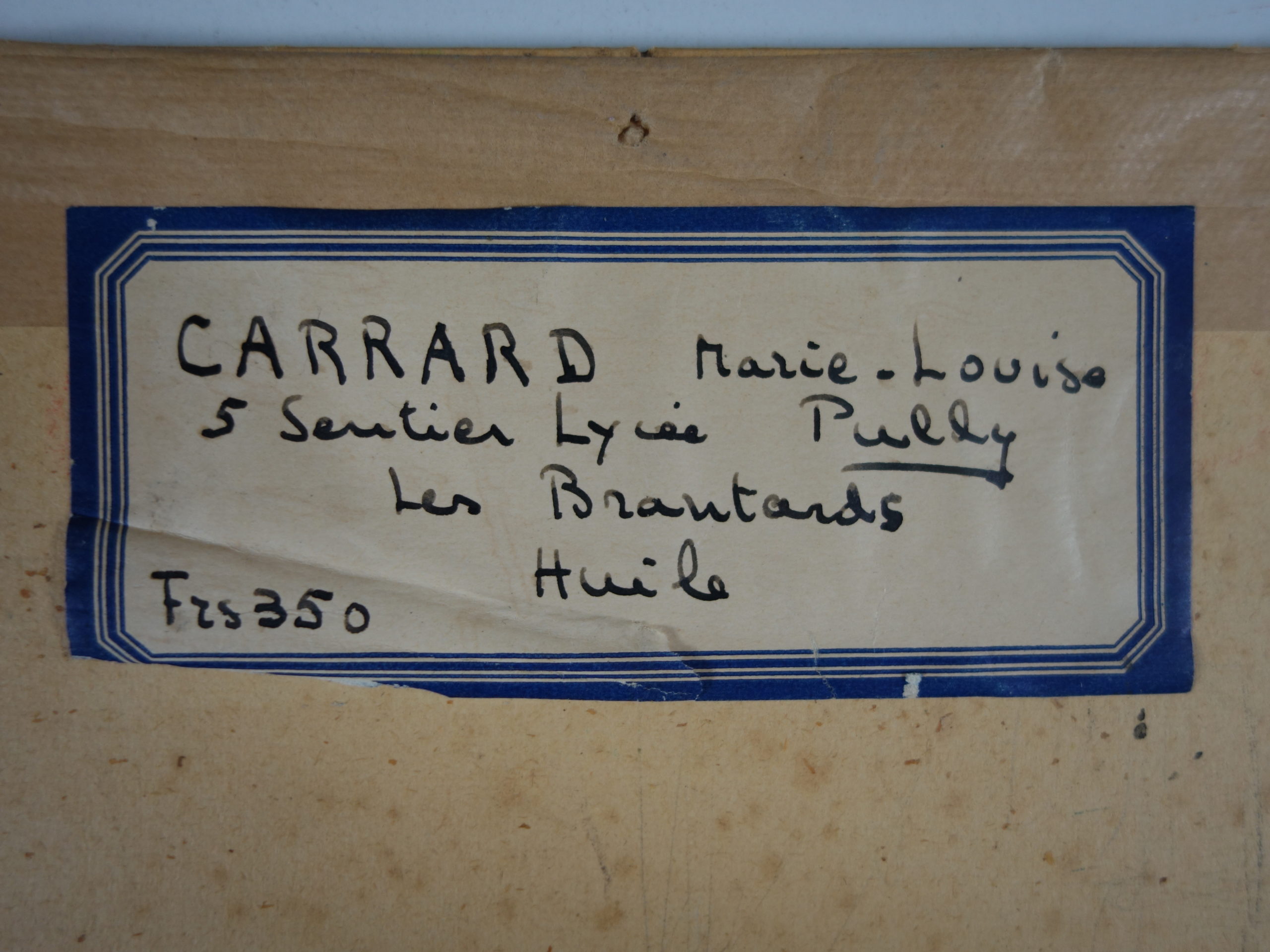 Les Brantards Artiste CARRARD-KOHLER Marie-Louise Numéro d'inventaire FAA-CML-3106 Titre Les Brantards Dimensions sur chassis 48.5x34.5 cm Technique / Support Huile, Carton Catégories Scène de genre Signature / Datation "M. L. Carrard" bd Remarques - titre sur une étiquette au dos Agrandir l'image Découvrez l'artiste CARRARD-KOHLER Marie-Louise Châtelard Orbe (CH) 5 septembre 1901 / 1 décembre 1981 Fonds géré par la FAA Consulter sa fiche Images complémentaires CARRARD-KOHLER Marie-Louise – Les Brantards – Huile, Carton, 48.5x34.5 cm – Scène de genre