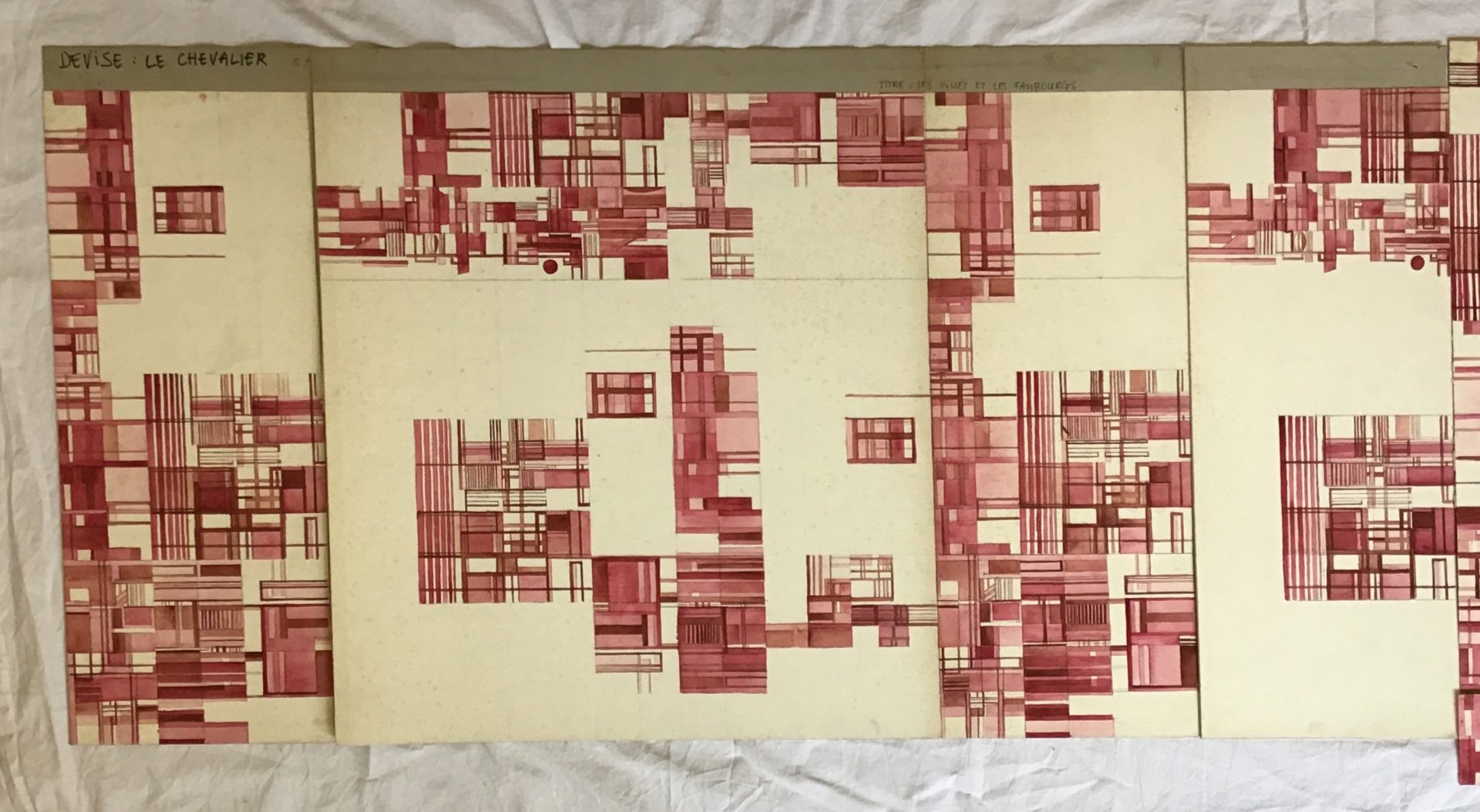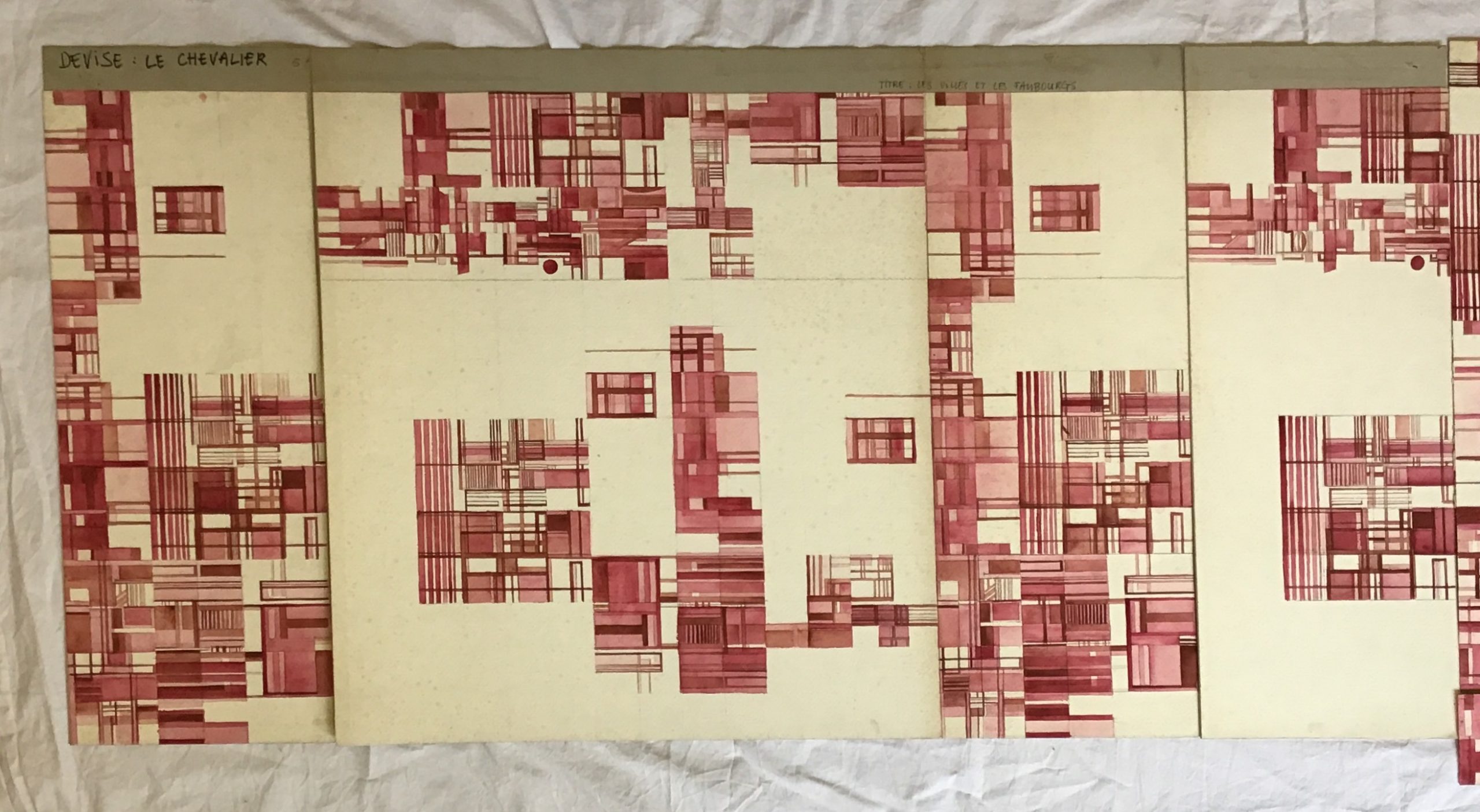 - Projet de concours Les Villes et les Faubourgs avec la devise « Le Chevalier », en 4 parties a-d (mention au dos), assemblées selon la photo.