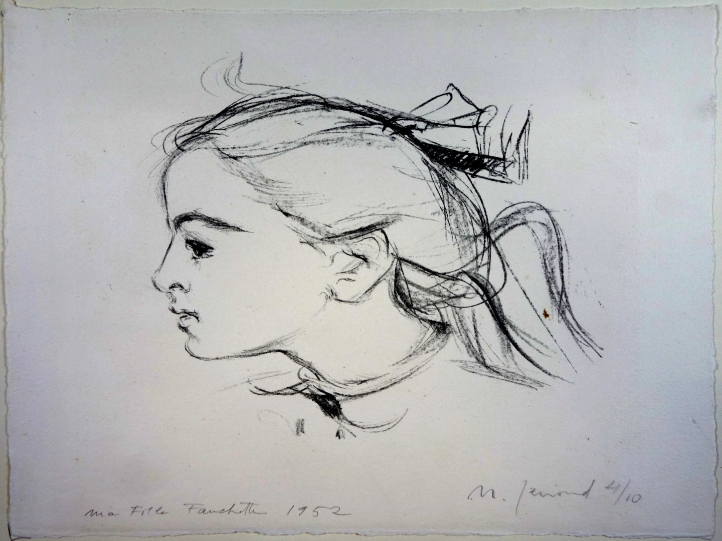 Ma fille Fanchette Artiste GENOUD Nanette Numéro d'inventaire FAA-GN-2588 Titre Ma fille Fanchette Année 1952 Dimensions sur chassis 23x28 cm Technique / Support Lithographie Catégories Portrait Signature / Datation "n.Genoud 4/10" bd "1952" bm Remarques "ma Fille Fanchette 1952", titre et date, sous l'image à gauche Agrandir l'image Découvrez l'artiste GENOUD Nanette (CH) 9 avril 1907 / 30 novembre 1987 Fonds géré par la FAA Consulter sa fiche