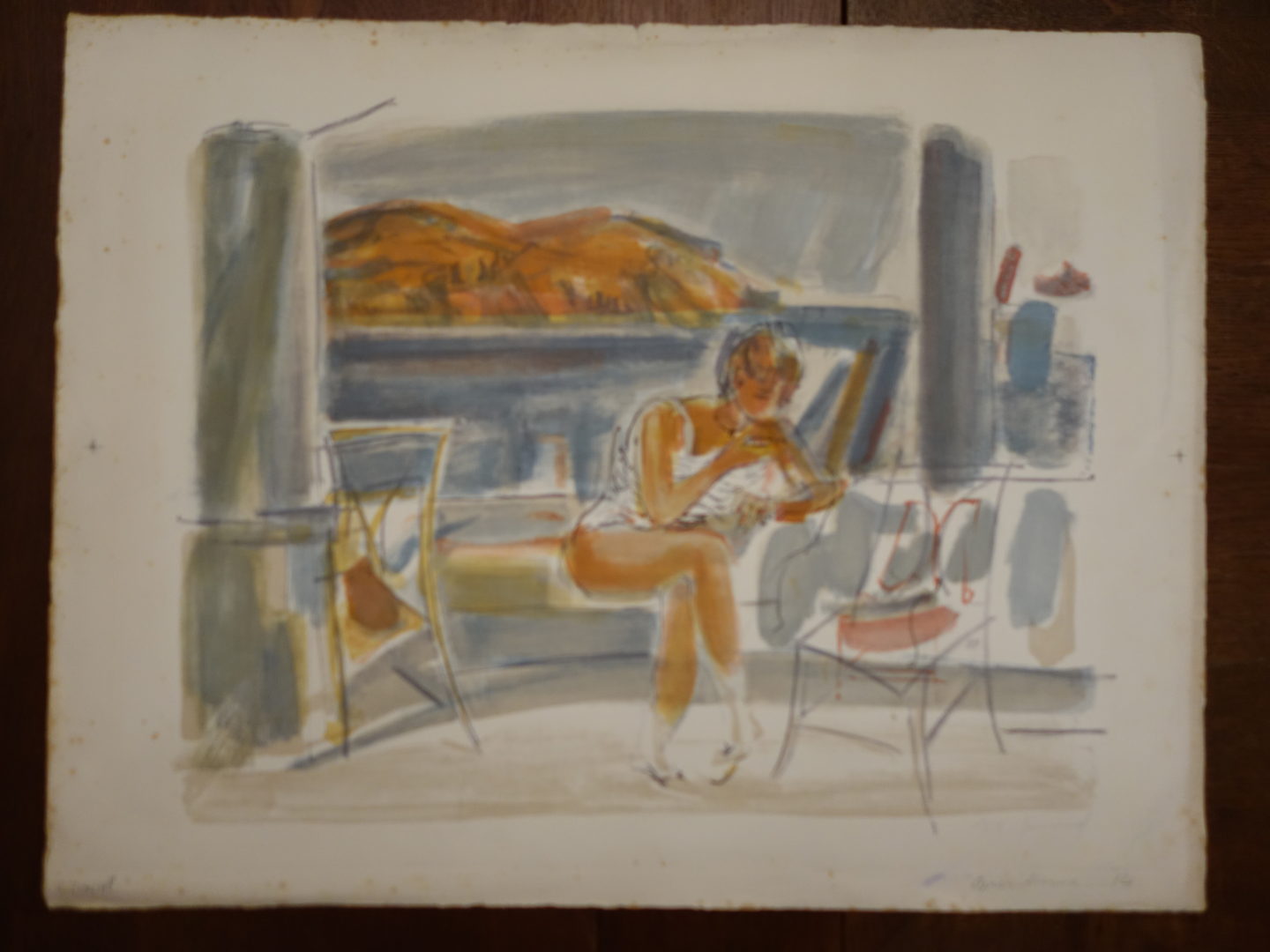 Méridienne Artiste GENOUD Nanette Numéro d'inventaire FAA-GN-2734 Titre Méridienne Dimensions sur chassis 50x65 cm Technique / Support Lithographie, Couleur Catégories Scène de genre Signature / Datation "n. Genoud" bd Remarques 1 épreuve comportant le titre et la mention "C. Davel", bg 1 épreuve non signée 1 épreuve noire, sans les lignes de détail Agrandir l'image Découvrez l'artiste GENOUD Nanette (CH) 9 avril 1907 / 30 novembre 1987 Fonds géré par la FAA Consulter sa fiche Images complémentaires GENOUD Nanette – Méridienne – Lithographie, Couleur, 50x65 cm – Scène de genre GENOUD Nanette – Méridienne – Lithographie, Couleur, 50x65 cm – Scène de genre