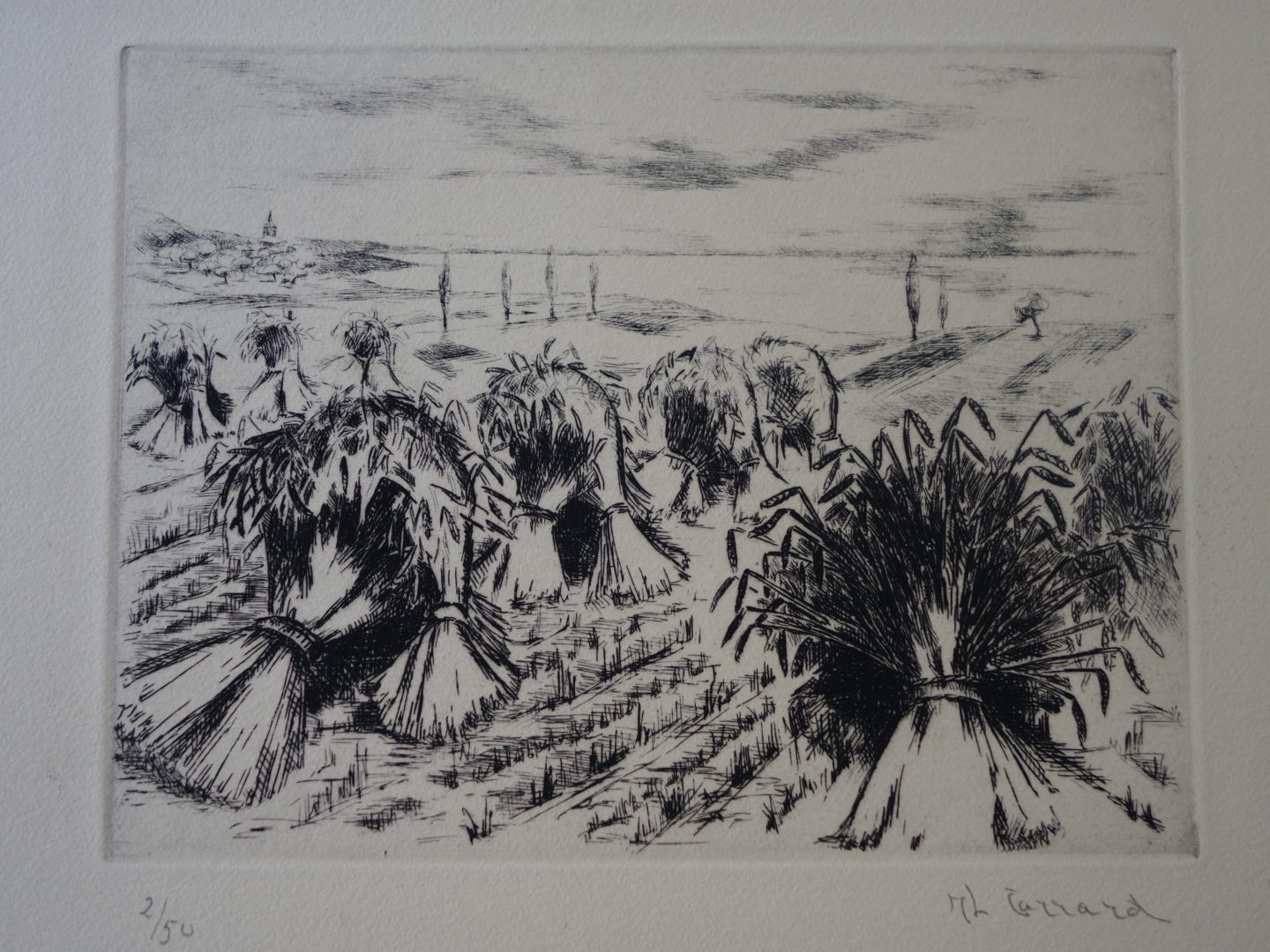 Moissons Artiste CARRARD-KOHLER Marie-Louise Numéro d'inventaire FAA-CML-3265 Titre Moissons Année 1950 Dimensions sur chassis 34.5x43.5 cm Technique / Support Eau forte Catégories Paysage Signature / Datation "ML Carrard" bd Remarques - 2 épreuves justifiées 1/50 et 2/50 - titre manuscrit sur le journal d'emballage de la plaque, daté 1950 Agrandir l'image Découvrez l'artiste CARRARD-KOHLER Marie-Louise Châtelard Orbe (CH) 5 septembre 1901 / 1 décembre 1981 Fonds géré par la FAA Consulter sa fiche