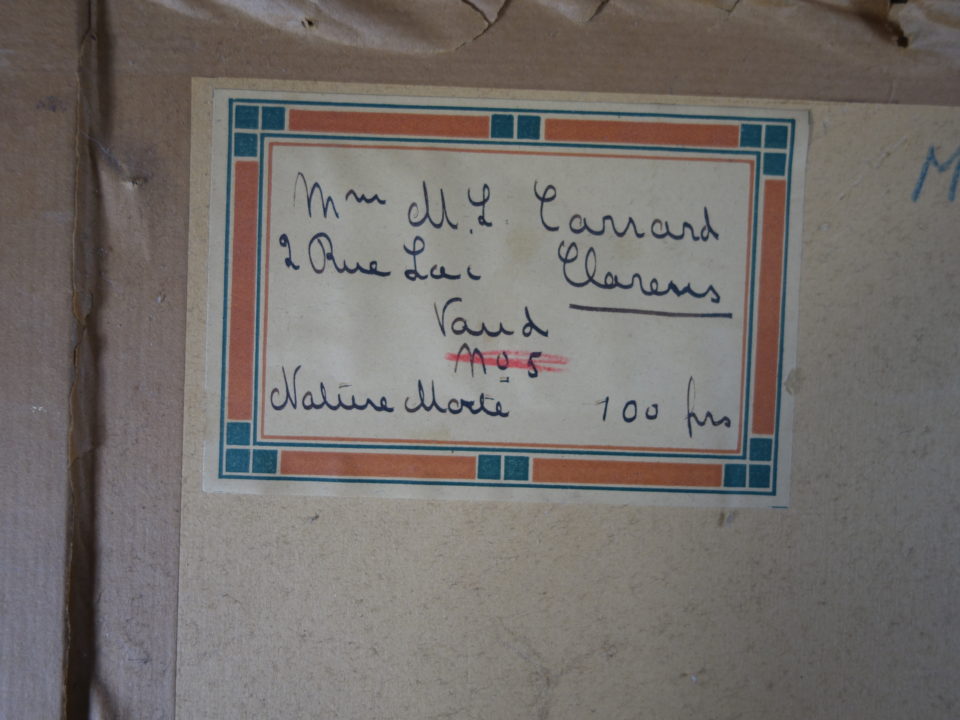 Nature morte Artiste CARRARD-KOHLER Marie-Louise Numéro d'inventaire FAA-CML-3142 Titre Nature morte Dimensions sur chassis 50.5x61 cm Technique / Support Huile, Carton Catégories Nature morte Signature / Datation "ML Carrard" bd "M.L. Carrard" sur étiquette collée au dos Agrandir l'image Découvrez l'artiste CARRARD-KOHLER Marie-Louise Châtelard Orbe (CH) 5 septembre 1901 / 1 décembre 1981 Fonds géré par la FAA Consulter sa fiche Images complémentaires CARRARD-KOHLER Marie-Louise – Nature morte – Huile, Carton, 50.5x61 cm – Nature morte