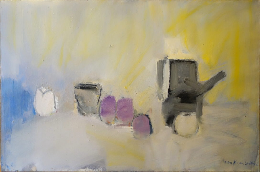 Nature morte à la cafetière Artiste PIERRE-HUMBERT Charles Numéro d'inventaire FAA-PHC-2893 Titre Nature morte à la cafetière Disponibilité Œuvre inaliénable Année 1975 Dimensions sur chassis 73x116 cm Technique / Support Huile, Toile Catégories Nature morte Signature / Datation "PierreHumbert 75" bd Remarques - titre au dos en haut à gauche - étiquette au dos de la galerie Daniel Besseiche Agrandir l'image Découvrez l'artiste PIERRE-HUMBERT Charles Thielle (NE) (CH) 10 septembre 1920 / 20 octobre 1992 Peinture, Lithographie, Mosaïque, Vitrail Fonds géré par la FAA Consulter sa fiche