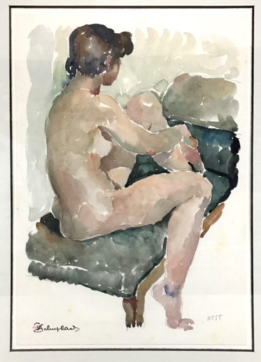 Nu assis au sofa bleu, de dos Artiste SCHÜPBACH Jean-Pierre Numéro d'inventaire FAA-SJP-3664 Titre Nu assis au sofa bleu, de dos Année 1955 Technique / Support Aquarelle, Papier Catégories Nu Signature / Datation "J.P. Schupbach" sceau bg "11.5.55" bd "407" no d'archive en rouge bg Remarques - titre selon Cat. Rey (aquarelle no 89) Agrandir l'image Découvrez l'artiste SCHÜPBACH Jean-Pierre (CH) 8 mars 1906 / 22 décembre 1992 Peinture, Dessin, Sculpture Fonds géré par la FAA Consulter sa fiche