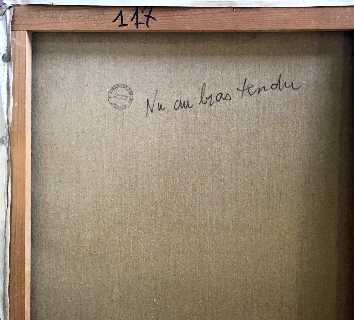 Nu au bras tendu Artiste PIERRE-HUMBERT Charles Numéro d'inventaire FAA-PHC-3824 Titre Nu au bras tendu Disponibilité Œuvre inaliénable Technique / Support Huile, Toile Catégories Nu Remarques - titre au dos - au dos, l’étiquette collé de la galerie « Galerie Daniel Besseiche » Agrandir l'image Découvrez l'artiste PIERRE-HUMBERT Charles Thielle (NE) (CH) 10 septembre 1920 / 20 octobre 1992 Peinture, Lithographie, Mosaïque, Vitrail Fonds géré par la FAA Consulter sa fiche Images complémentaires PIERRE-HUMBERT Charles – Nu au bras tendu – Huile, Toile – Nu