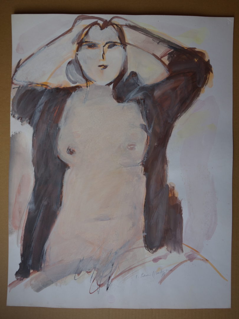 Nu aux bras levés Artiste PIERRE-HUMBERT Charles Numéro d'inventaire FAA-PHC-2983 Titre Nu aux bras levés Disponibilité Œuvre inaliénable Année 1988 Dimensions sur chassis 65x50 cm Technique / Support Gouache, Craie grasse Catégories Nu Signature / Datation "C. PierreHumbert 88" bd Remarques Titre au dos Agrandir l'image Découvrez l'artiste PIERRE-HUMBERT Charles Thielle (NE) (CH) 10 septembre 1920 / 20 octobre 1992 Peinture, Lithographie, Mosaïque, Vitrail Fonds géré par la FAA Consulter sa fiche