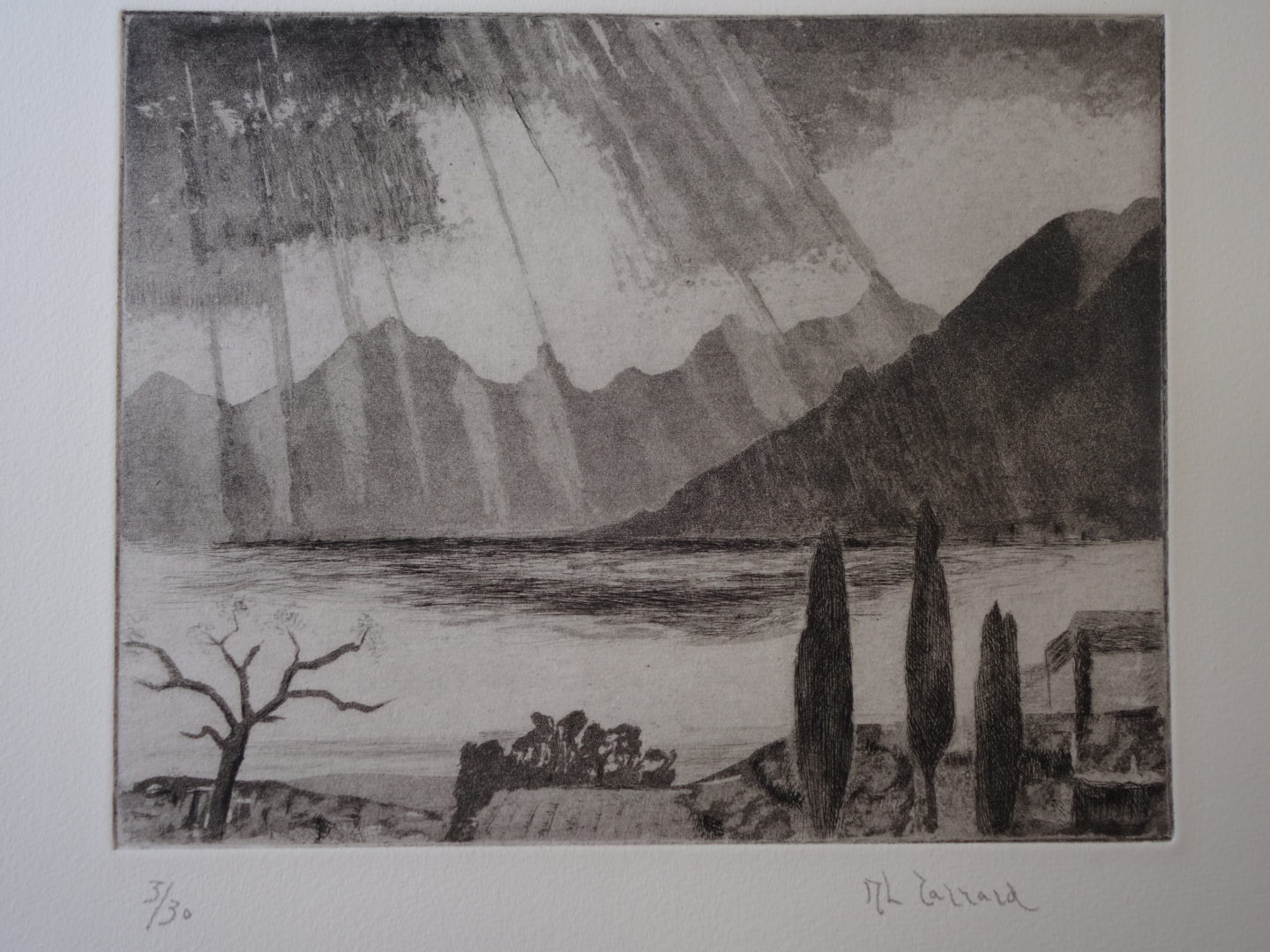 Nuages Lac Artiste CARRARD-KOHLER Marie-Louise Numéro d'inventaire FAA-CML-3297 Titre Nuages Lac Période Vers 1970 Dimensions sur chassis 34.5x43.5 cm Technique / Support Eau forte, Aquatinte Catégories Paysage lacustre Signature / Datation "ML Carrard" bd Remarques - 5 épreuves justifiées 1/30 à 5/30 - titre et date manuscrits sur le papier d'emballage de la plaque Agrandir l'image Découvrez l'artiste CARRARD-KOHLER Marie-Louise Châtelard Orbe (CH) 5 septembre 1901 / 1 décembre 1981 Fonds géré par la FAA Consulter sa fiche