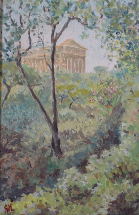 - Paestum – Temple de Neptune derrière des feuillages