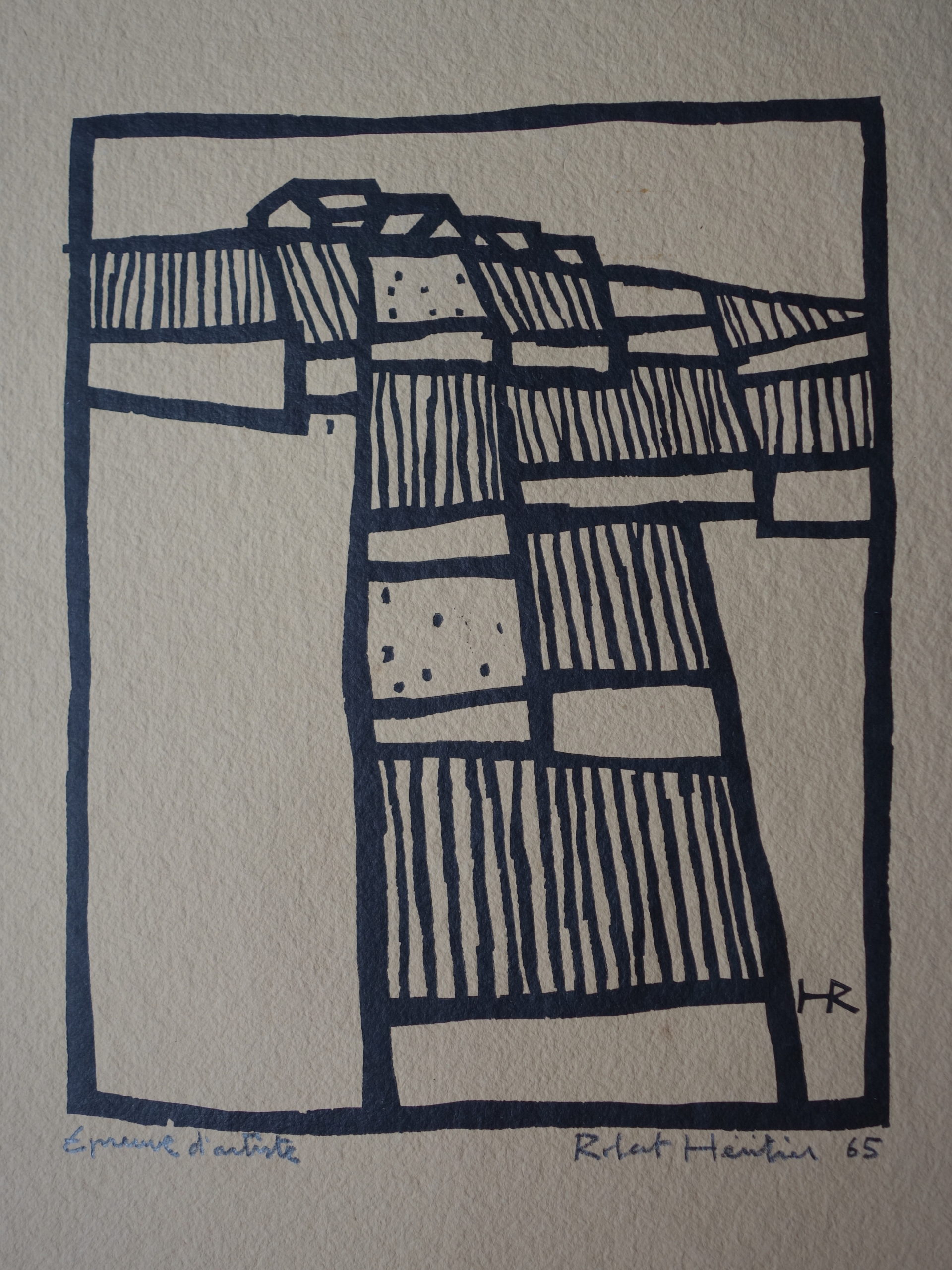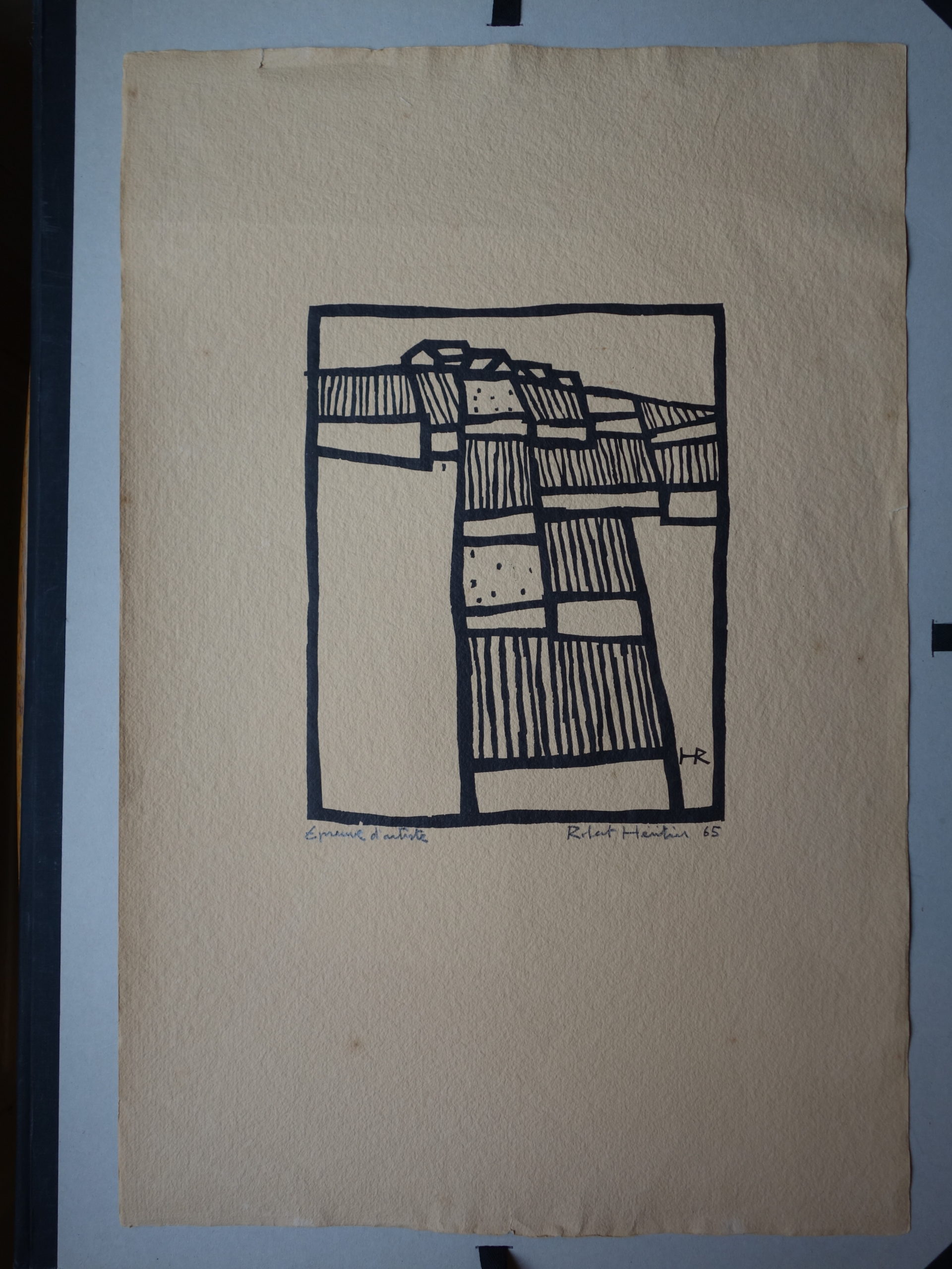 3 épreuves signées et justifiées "Epreuve d'artiste" sur papier blanc plus petit, une d'elles encadrée sous verre, avec la mention du titre sur une étiquette collée au dos