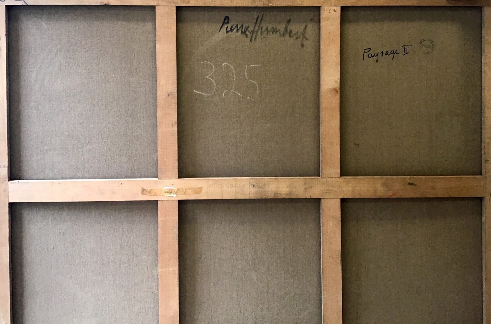 Paysage II Artiste PIERRE-HUMBERT Charles Numéro d'inventaire FAA-PHC-3850 Titre Paysage II Technique / Support Huile, Toile Catégories Paysage Signature / Datation « PierreHumbert » bg Littérature - titre au dos - numéro préexistant supplémentaire : 325 - timbre au dos « Douane générale Paris exportation » Agrandir l'image Découvrez l'artiste PIERRE-HUMBERT Charles Thielle (NE) (CH) 10 septembre 1920 / 20 octobre 1992 Peinture, Lithographie, Mosaïque, Vitrail Fonds géré par la FAA Consulter sa fiche Images complémentaires PIERRE-HUMBERT Charles – Paysage II – Huile, Toile – Paysage