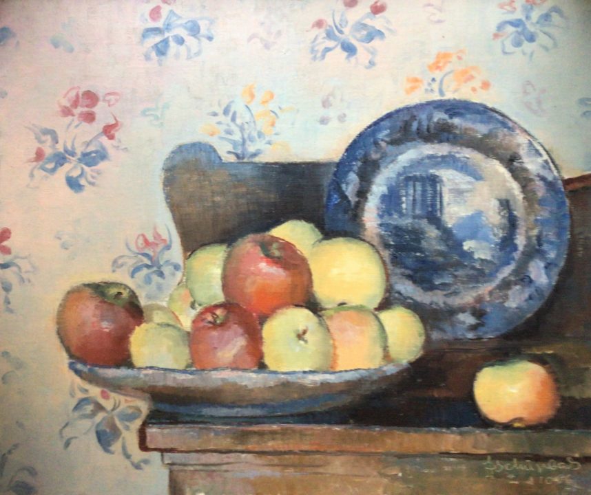 Plat de pommes devant une assiette à décor bleu Artiste SCHÜPBACH Jean-Pierre Numéro d'inventaire FAA-SJP-4916 Titre Plat de pommes devant une assiette à décor bleu Année 1966 Technique / Support Huile, Bois croisé, Panneau Catégories Nature morte Signature / Datation JSchupbach, 1 10 66 Littérature Catalogue de Ph. Rey Remarques N°1287 au catalogue de Ph. Rey Agrandir l'image Découvrez l'artiste SCHÜPBACH Jean-Pierre (CH) 8 mars 1906 / 22 décembre 1992 Peinture, Dessin, Sculpture Fonds géré par la FAA Consulter sa fiche