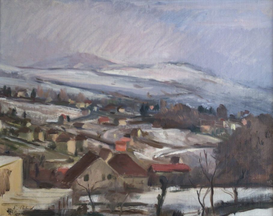 - Figure au catalogue « Émile Pahud, artiste peintre et pédagogue », p. 122, intitulé « chemin du Levant, première neige, 1942 ».