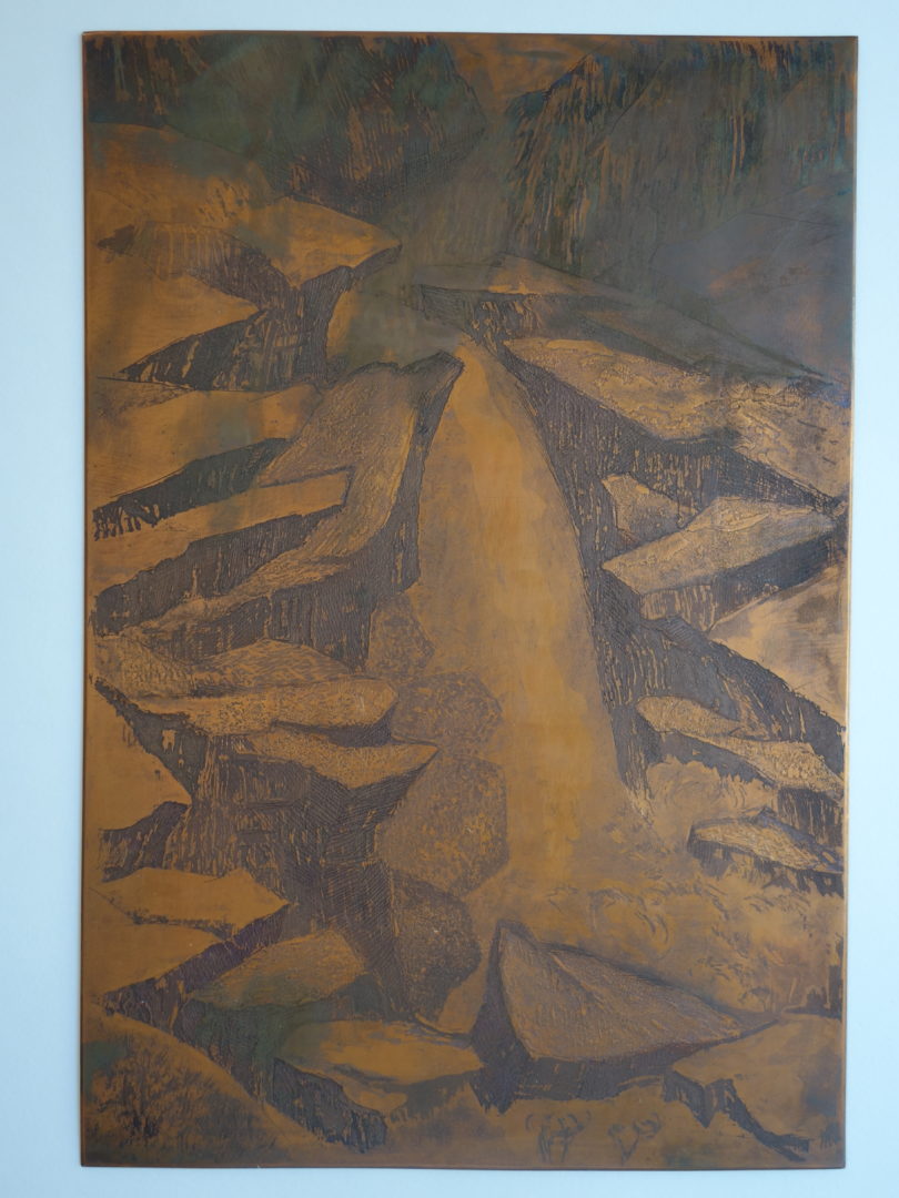 Rawil Artiste CARRARD-KOHLER Marie-Louise Numéro d'inventaire FAA-CML-3235 Titre Rawil Dimensions sur chassis 31x21 cm Technique / Support Cuivre Catégories Remarques - plaque du numéro précédent - il existe une plaque d'une variante de ce motif. Elle se trouve au verso de la plaque n° inv. 3429 Agrandir l'image Découvrez l'artiste CARRARD-KOHLER Marie-Louise Châtelard Orbe (CH) 5 septembre 1901 / 1 décembre 1981 Fonds géré par la FAA Consulter sa fiche
