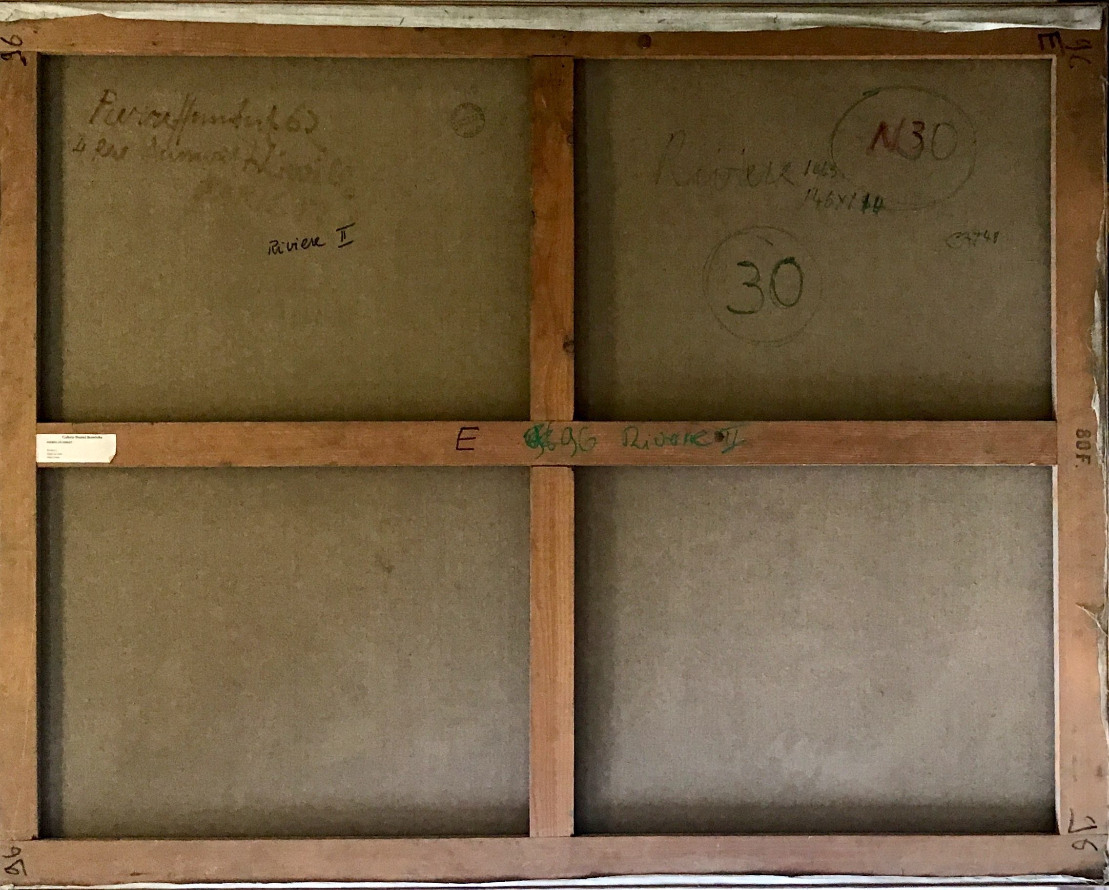 - au dos étiquette collée de la galerie Daniel Besseiche avec le titre « Rivière II »