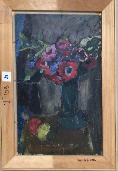Sans titre – nature morte Artiste HESSELBARTH Jean-Claude Numéro d'inventaire FAA-HEJ-6368 Titre Sans titre – nature morte Disponibilité Œuvre inaliénable Année 1950 Technique / Support Huile, Carton Catégories Nature morte Remarques - titre et date dans inventaire des oeuvres de l’atelier - au dos, autre nature morte bouquet d’anémones Agrandir l'image Découvrez l'artiste HESSELBARTH Jean-Claude Lausanne (CH) 29 mars 1925 / 13 mai 2015 Fonds géré par la FAA Consulter sa fiche Images complémentaires HESSELBARTH Jean-Claude – Sans titre – nature morte 1950 – Huile, Carton – Nature morte