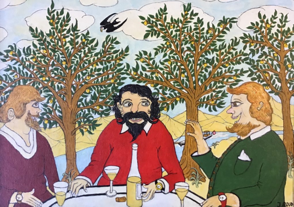 - Étiquette au dos identifiant l’artiste, le titre, le lieu d’exposition.