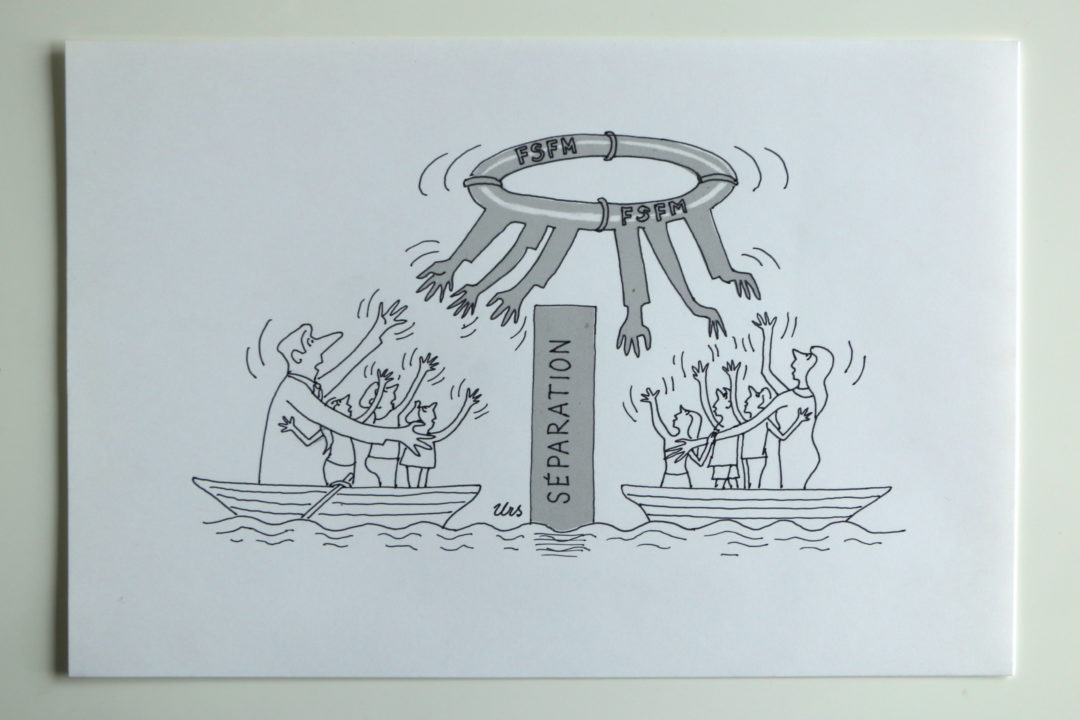 Séparation Artiste URS (Frédéric Studer) Numéro d'inventaire FAA-URS-4127 Titre Séparation Technique / Support Encre, Trame, Papier Catégories Scène de genre Signature / Datation "Urs" bm Remarques - "FSFM" correspond à la Fédération Suisse des familles monoparentales Agrandir l'image Découvrez l'artiste URS (Frédéric Studer) (CH) 26 mai 1926 / 22 octobre 2005 Fonds géré par la FAA Consulter sa fiche