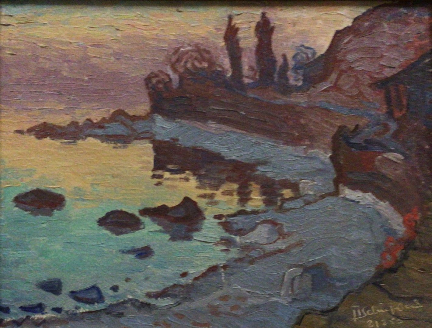 Soleil couchant à la crique aux deux cyprès Artiste SCHÜPBACH Jean-Pierre Numéro d'inventaire FAA-SJP-6256 Titre Soleil couchant à la crique aux deux cyprès Disponibilité Œuvre inaliénable Année 1950 Technique / Support Huile, Ardoise Catégories Paysage lacustre Signature / Datation JPSchupbach, 21.2.50, bd Agrandir l'image Découvrez l'artiste SCHÜPBACH Jean-Pierre (CH) 8 mars 1906 / 22 décembre 1992 Peinture, Dessin, Sculpture Fonds géré par la FAA Consulter sa fiche