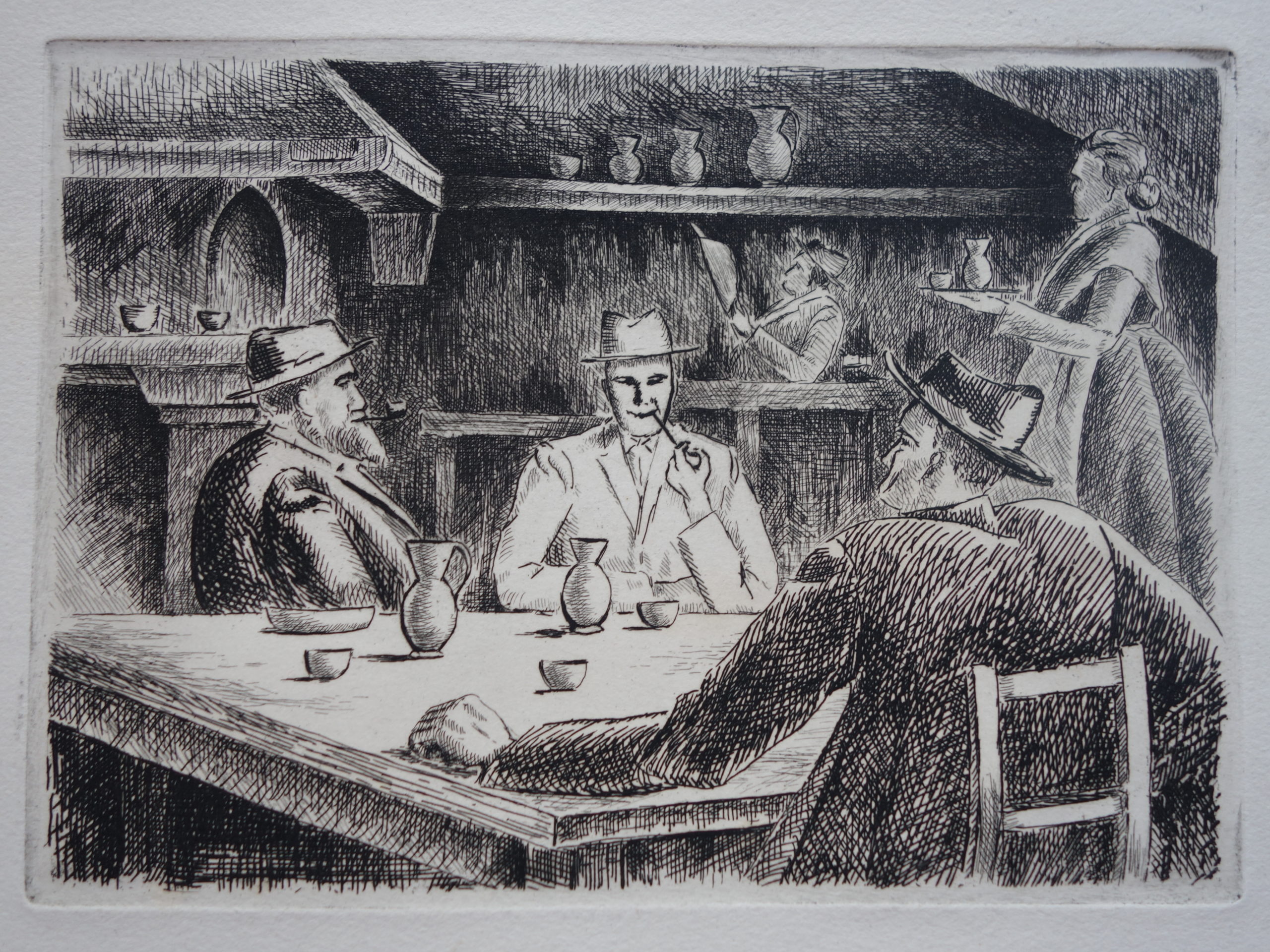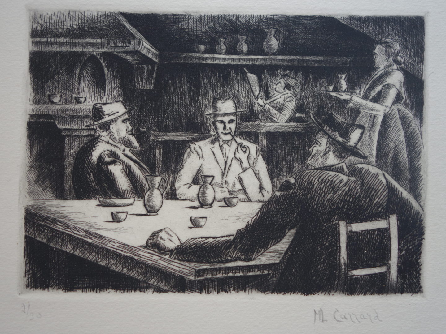 Tessin Café Artiste CARRARD-KOHLER Marie-Louise Numéro d'inventaire FAA-CML-3218 Titre Tessin Café Année 1976 Dimensions sur chassis 34.5x43.5 cm Technique / Support Eau forte Catégories Scène de genre Signature / Datation "ML Carrard" bd (épreuves 2e état) Remarques - 1 épreuve non justifiée d'un 1er état - 2 épreuves justifiées 2/30 et 4/30 d'un second état Agrandir l'image Découvrez l'artiste CARRARD-KOHLER Marie-Louise Châtelard Orbe (CH) 5 septembre 1901 / 1 décembre 1981 Fonds géré par la FAA Consulter sa fiche Images complémentaires CARRARD-KOHLER Marie-Louise – Tessin Café 1976 – Eau forte, 34.5x43.5 cm – Scène de genre