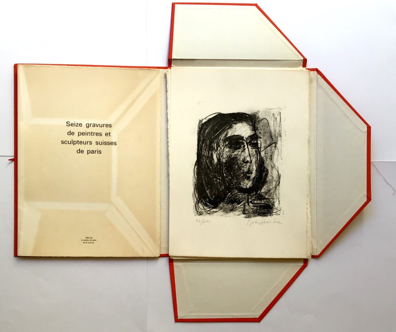 - partie prenante d’une édition de « Seize gravures de peintres et sculpteurs suisses de Paris », édité par la section de Paris de la S.P.S.A.S. de 1973. Exemplaire n°97, tirage de 100 exemplaires titrés et signés.