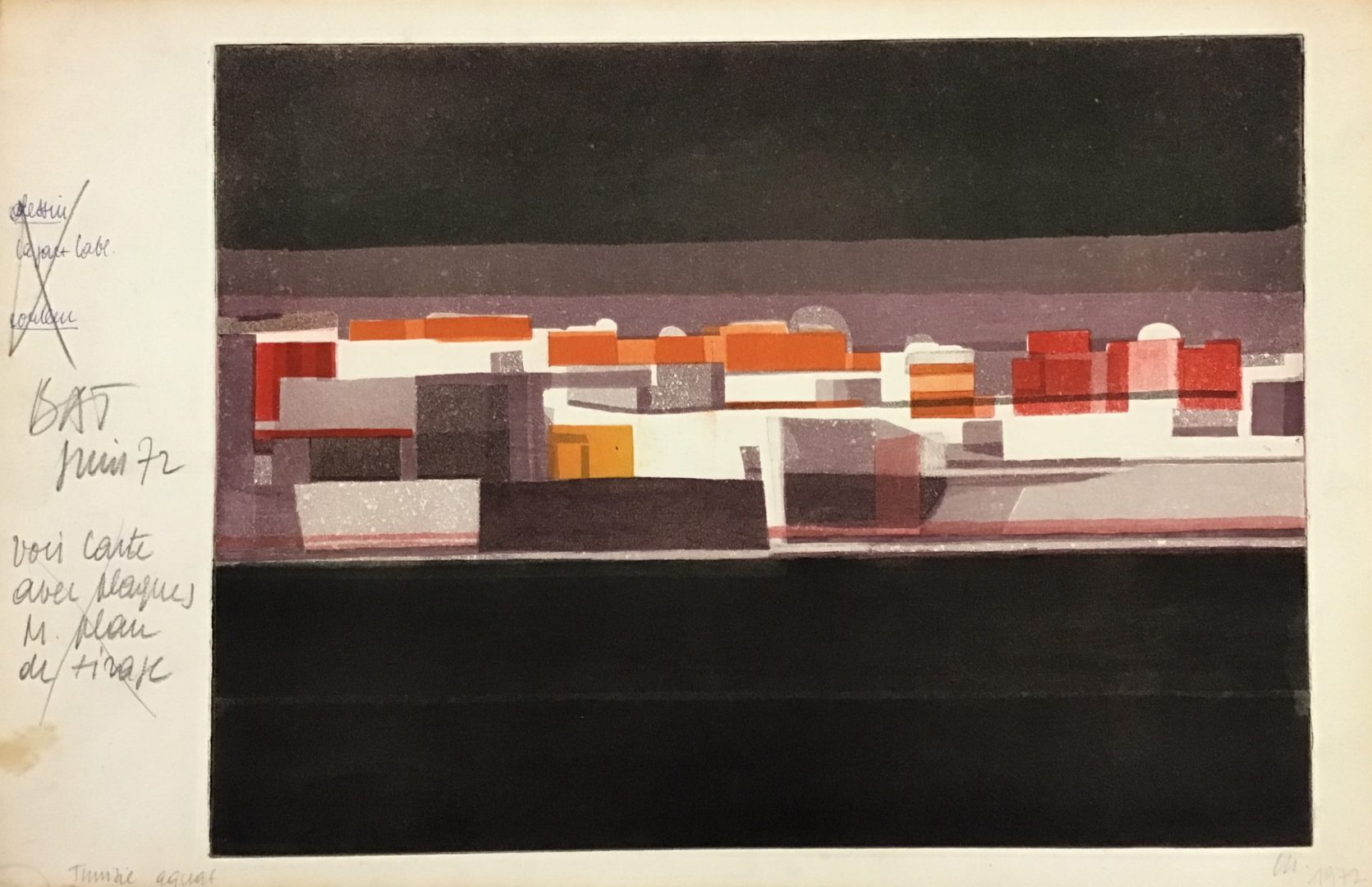 Tunisie Artiste MEYSTRE Charles Numéro d'inventaire FAA-MC-5547 Titre Tunisie Année 1972 Technique / Support Aquatinte Catégories Paysage Signature / Datation « M. 1972 » bd Remarques - Désigné comme BAT, juin 72 et annotations diverses, biffées - Au dos, tirage d’une aquatinte et crayon, barrée Agrandir l'image Découvrez l'artiste MEYSTRE Charles Thierrens (CH) 1 février 1925 / 18 mars 2013 Fonds géré par la FAA Consulter sa fiche