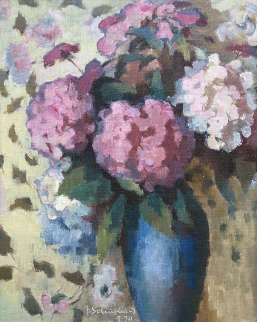 Vase bleu d’hortensias roses Artiste SCHÜPBACH Jean-Pierre Numéro d'inventaire FAA-SJP-4900 Titre Vase bleu d’hortensias roses Technique / Support Huile, Marouflé/ée, Toile Catégories Nature morte Signature / Datation « JPSchupbach 7.74 » bm Remarques Répertorié aussi 956 6F par l’artiste CAT = catalogue raisonné Philippe Rey Agrandir l'image Découvrez l'artiste SCHÜPBACH Jean-Pierre (CH) 8 mars 1906 / 22 décembre 1992 Peinture, Dessin, Sculpture Fonds géré par la FAA Consulter sa fiche