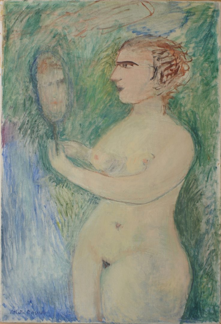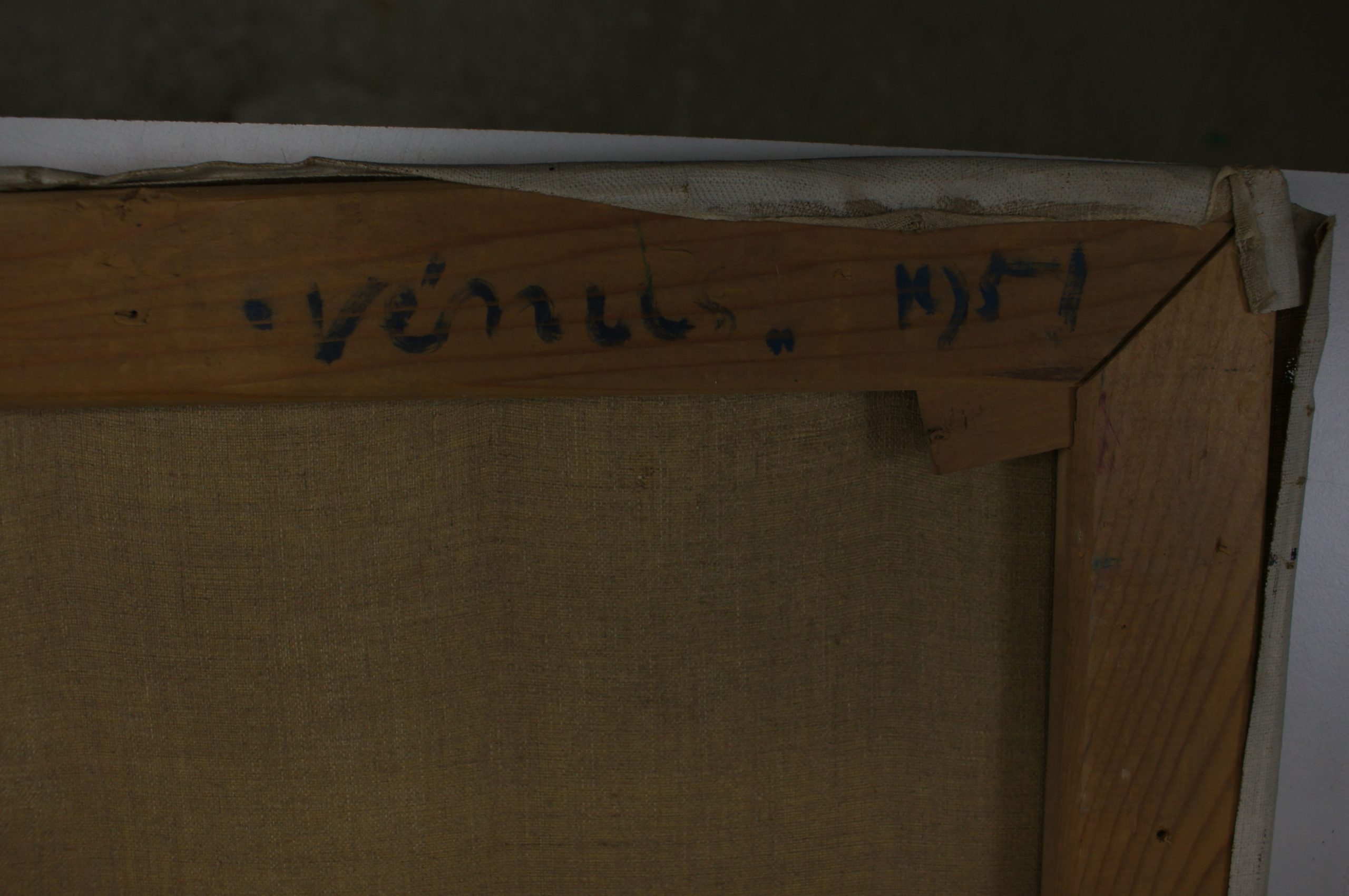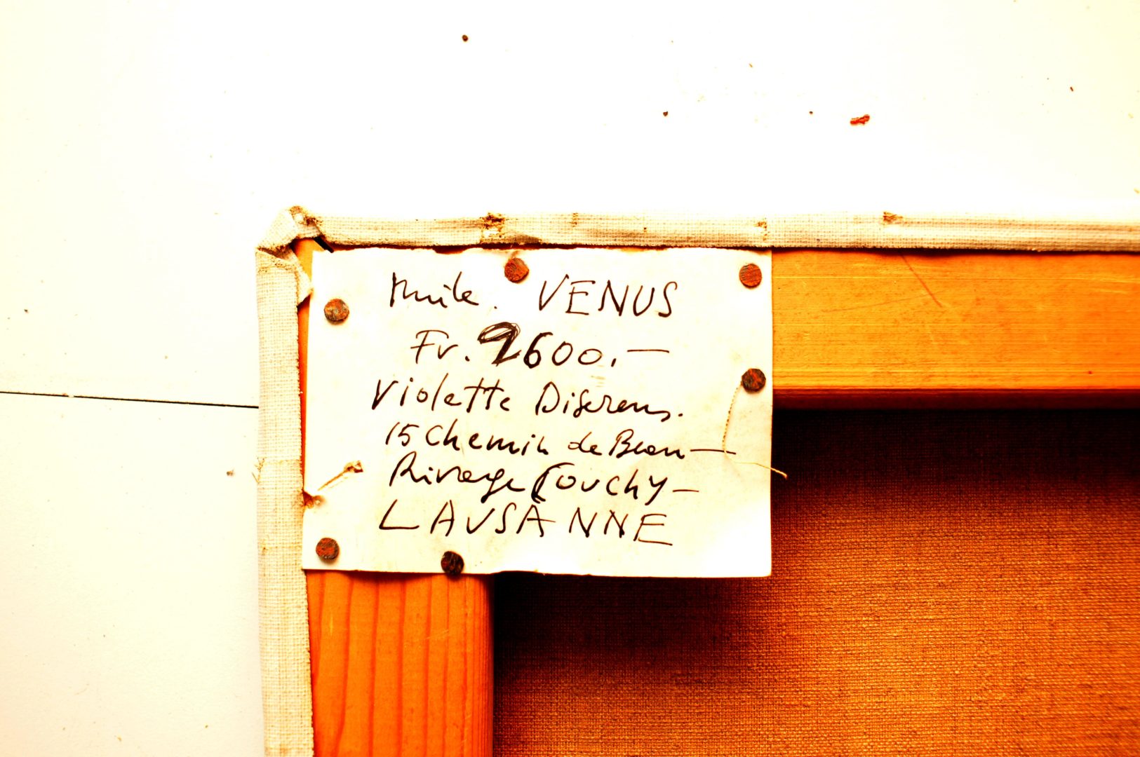 Vénus Artiste DISERENS Violette Numéro d'inventaire FAA-DV-1522 Titre Vénus Année 1951 Dimensions sur chassis 73.5x50 cm Technique / Support Huile, Toile Catégories Mythologie Signature / Datation "Violette Diserens" bg Remarques - prix historique Fr. 2'600.- (transformé en 9'600 ?) - griffure hd - clou sortant du châssis Agrandir l'image Découvrez l'artiste DISERENS Violette Lausanne (CH) 2 juin 1888 / 27 avril 1965 Peinture, Gravure Fonds géré par la FAA Consulter sa fiche Images complémentaires DISERENS Violette – Vénus 1951 – Huile, Toile, 73.5x50 cm – Mythologie DISERENS Violette – Vénus 1951 – Huile, Toile, 73.5x50 cm – Mythologie