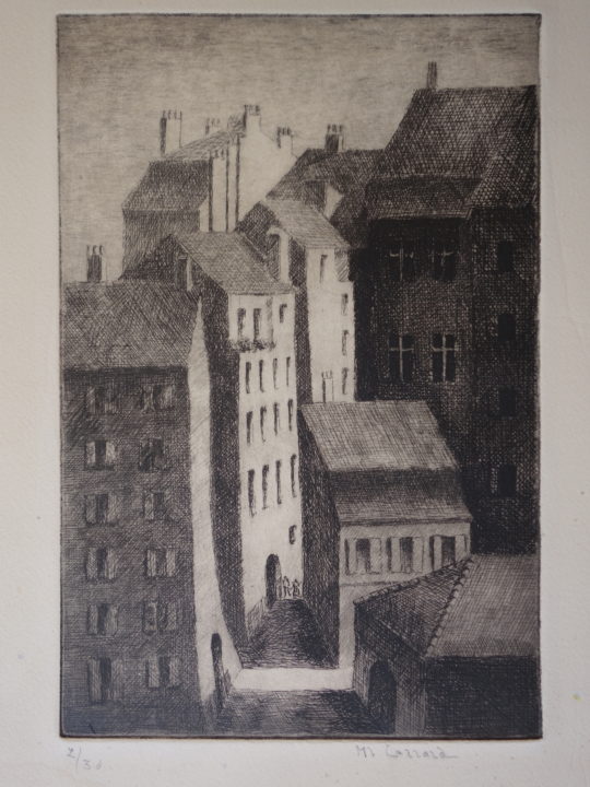 Vielles maisons Artiste CARRARD-KOHLER Marie-Louise Numéro d'inventaire FAA-CML-3317 Titre Vielles maisons Année 1941 Dimensions sur chassis 27x21 cm Technique / Support Eau forte Catégories Paysage urbain Signature / Datation "ML Carrard" bd Remarques - 1 épreuve justifiée 2/30 - date selon journal d'emballage de la plaque, daté 1941 - titre au dos du passe-partout Agrandir l'image Découvrez l'artiste CARRARD-KOHLER Marie-Louise Châtelard Orbe (CH) 5 septembre 1901 / 1 décembre 1981 Fonds géré par la FAA Consulter sa fiche