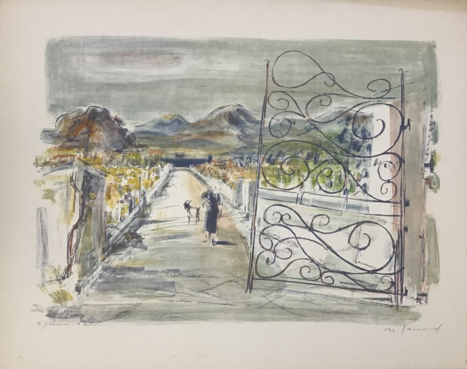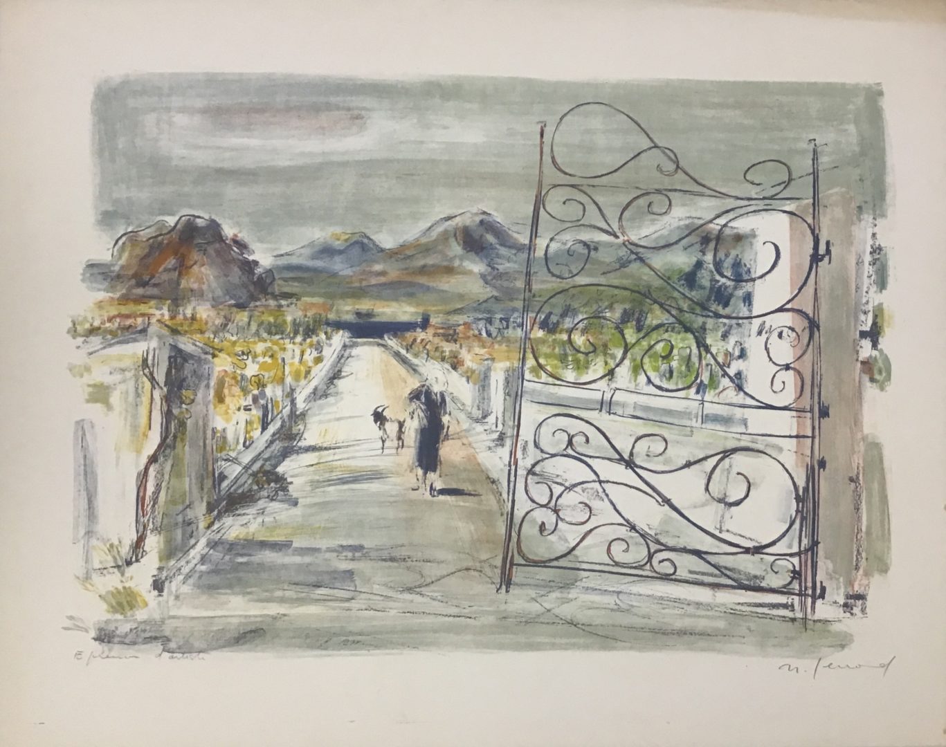 1 épreuve rehaussée d'aquarelle, signée bd, avec la mention "Aquarelle originale pour Vignes à vulcano" bg