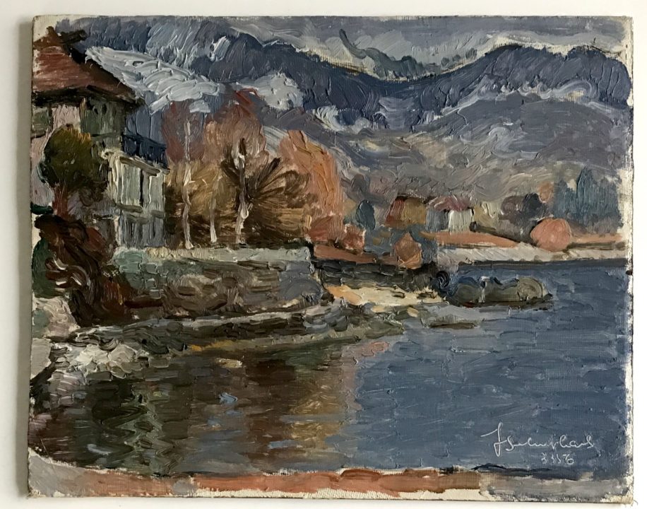 Villa au bord du lac à Clarens Artiste SCHÜPBACH Jean-Pierre Numéro d'inventaire FAA-SJP-3626 Titre Villa au bord du lac à Clarens Année 1956 Dimensions sur chassis 21.5x27 cm Technique / Support Huile, Marouflé/ée, Toile Catégories Paysage lacustre Signature / Datation « J.P. Schupbach / 3 3 56 » bd Remarques - titre provient du fat. Rey no 152 Agrandir l'image Découvrez l'artiste SCHÜPBACH Jean-Pierre (CH) 8 mars 1906 / 22 décembre 1992 Peinture, Dessin, Sculpture Fonds géré par la FAA Consulter sa fiche