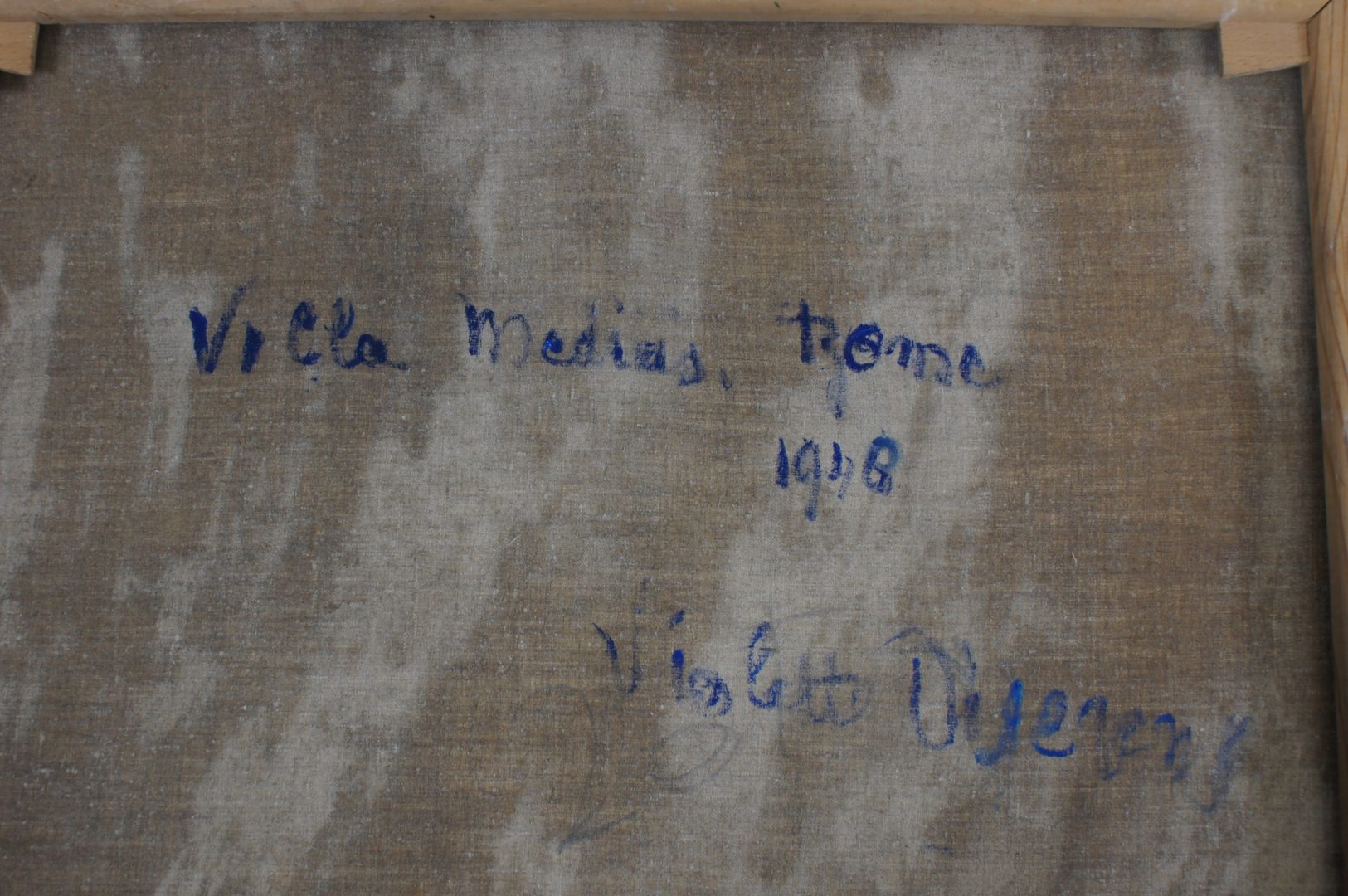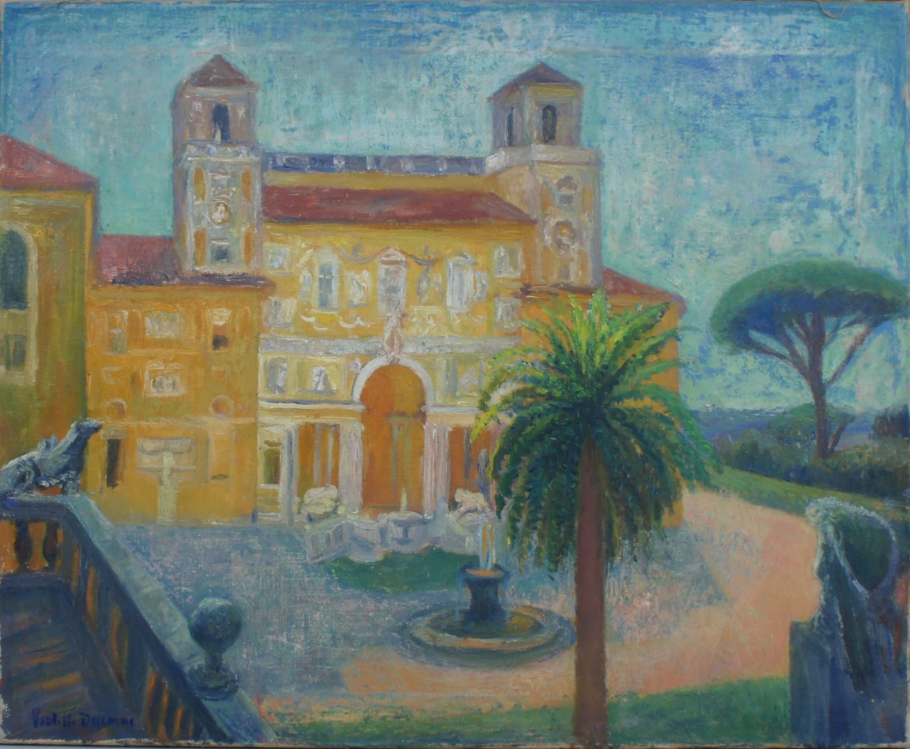 Villa Médicis, Rome Artiste DISERENS Violette Numéro d'inventaire FAA-DV-1542 Titre Villa Médicis, Rome Année 1948 Dimensions sur chassis 73x60 cm Technique / Support Huile, Toile Catégories Architecture Signature / Datation "Violette Diserens" bg et au dos Remarques - titré et daté au verso Agrandir l'image Découvrez l'artiste DISERENS Violette Lausanne (CH) 2 juin 1888 / 27 avril 1965 Peinture, Gravure Fonds géré par la FAA Consulter sa fiche Images complémentaires DISERENS Violette – Villa Médicis, Rome 1948 – Huile, Toile, 73x60 cm – Architecture