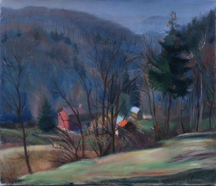 - Au verso de la toile, est inscrit « Zollikon - Zürich/Ursula Hanhart/gemidmet/13 mars 43/f » mh. Est-ce que la mention zollikon zurich concerne-t-elle le lieu représenté ou le lieu d’habitation de Mme. Hanhart ?